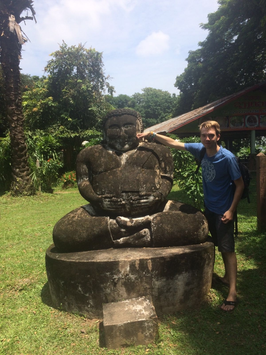 So beschlossen wir, am Samstag in den Buddha Park in Vientiane zu gehen. Der Buddha Park ist ein riesiger Park voller Skulpturen rund um den Buddhismus, mit einer riesigen liegenden Buddha-Statue in der Mitte. Außerdem lässt es sich in kleinen Hütten sehr gut Werwolf spielen. Aber da Bilder bekanntlich mehr als tausend Worte sprechen: